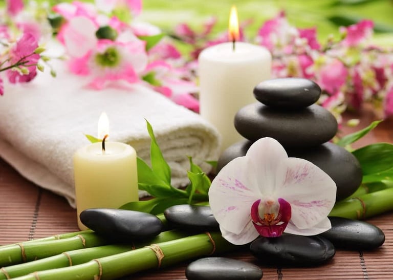 Calm environment, candles, oil and relaxing music